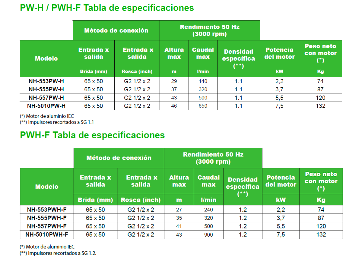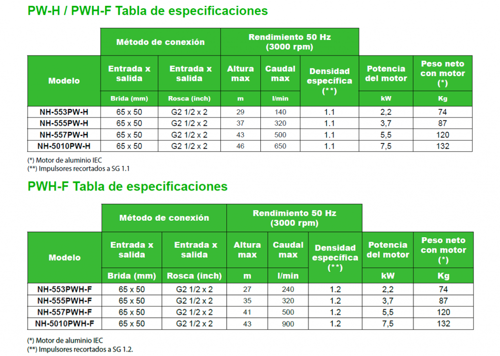 Caudal (50 Hz): hasta 900 L/min